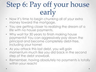 7 step step step step step step step. Pay off all debt. Save 1000 for your starter emergency fund.